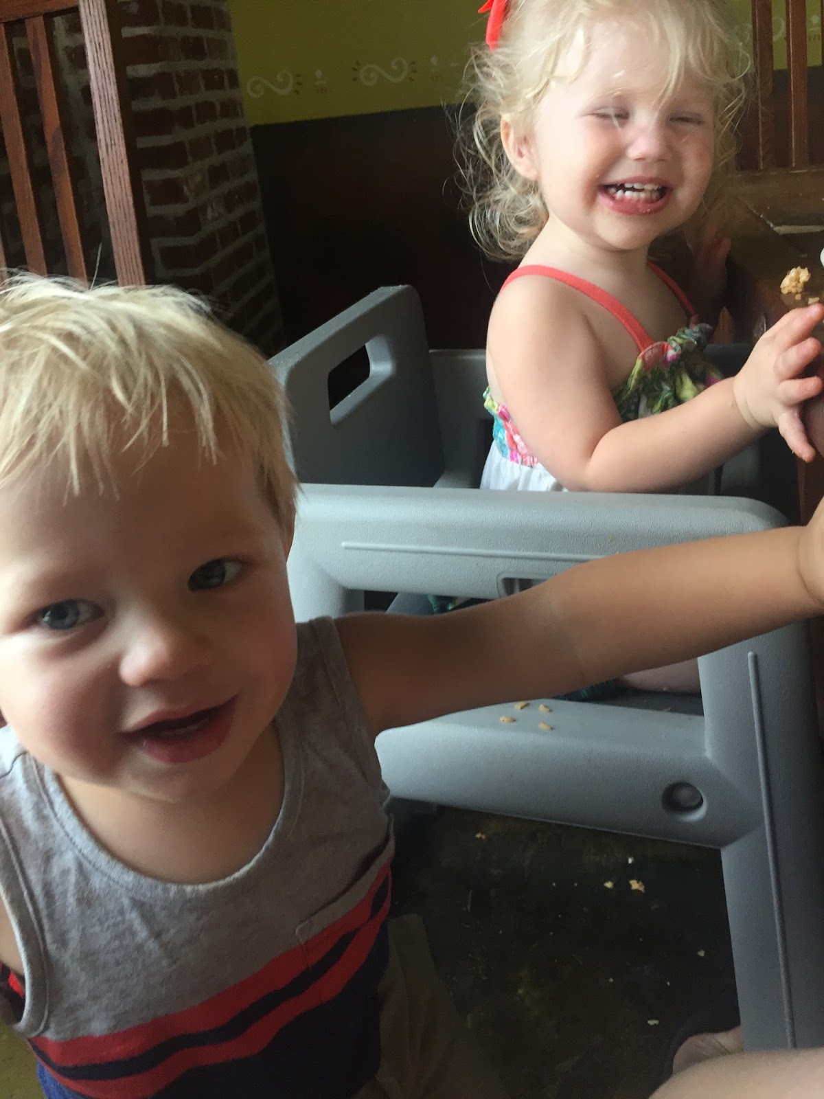But I've said it before and I'll say it again - I'll take days like that over working any day. Today has been a much better day, thank goodness! They have listened well today. We swam at my parents' house after lunch for a little bit and Raley actually worked with me on things that she's been learning in swim lessons. Audrey is my little fish and kept throwing herself backward with her puddle jumper on in a back float position and laughing every time her ears would get in the water. And thank goodness for my sanity, they are both napping!